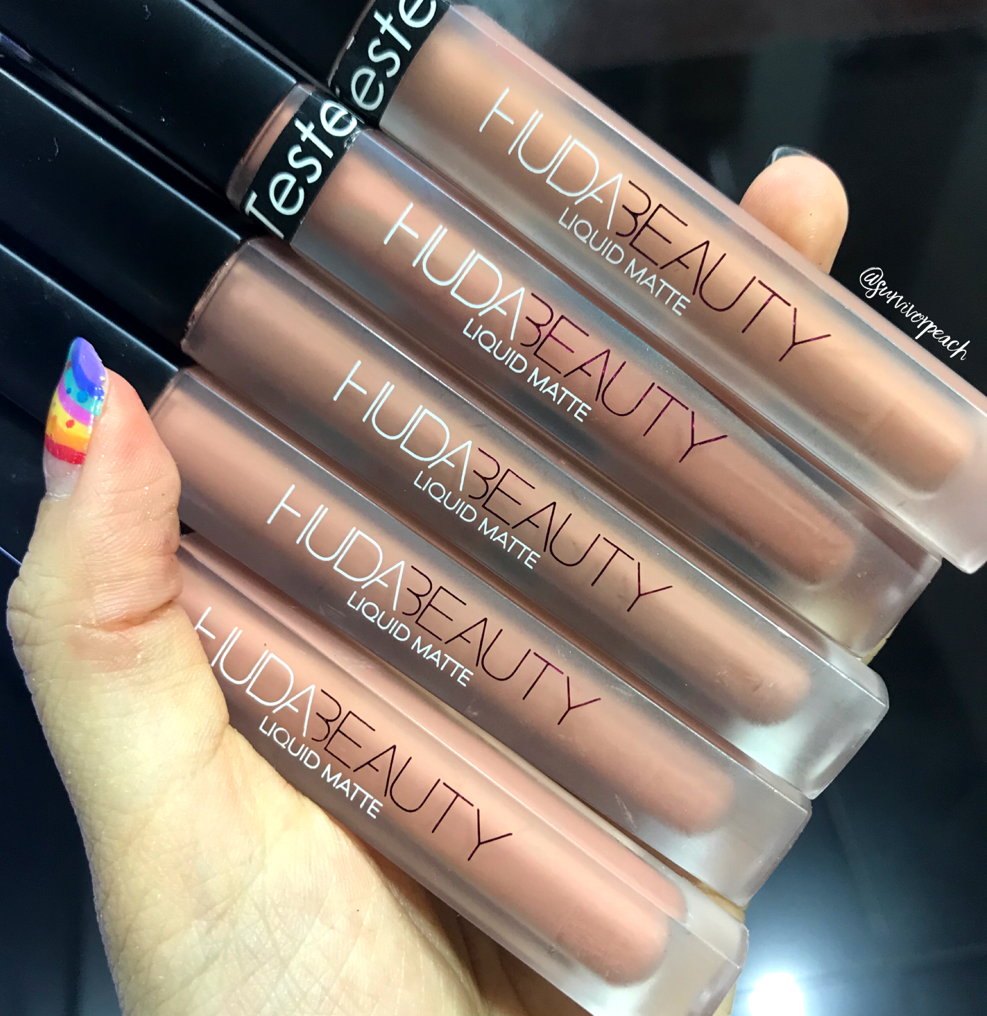 Huda Beauty Liquid Matte Lipstick swatches of all shades