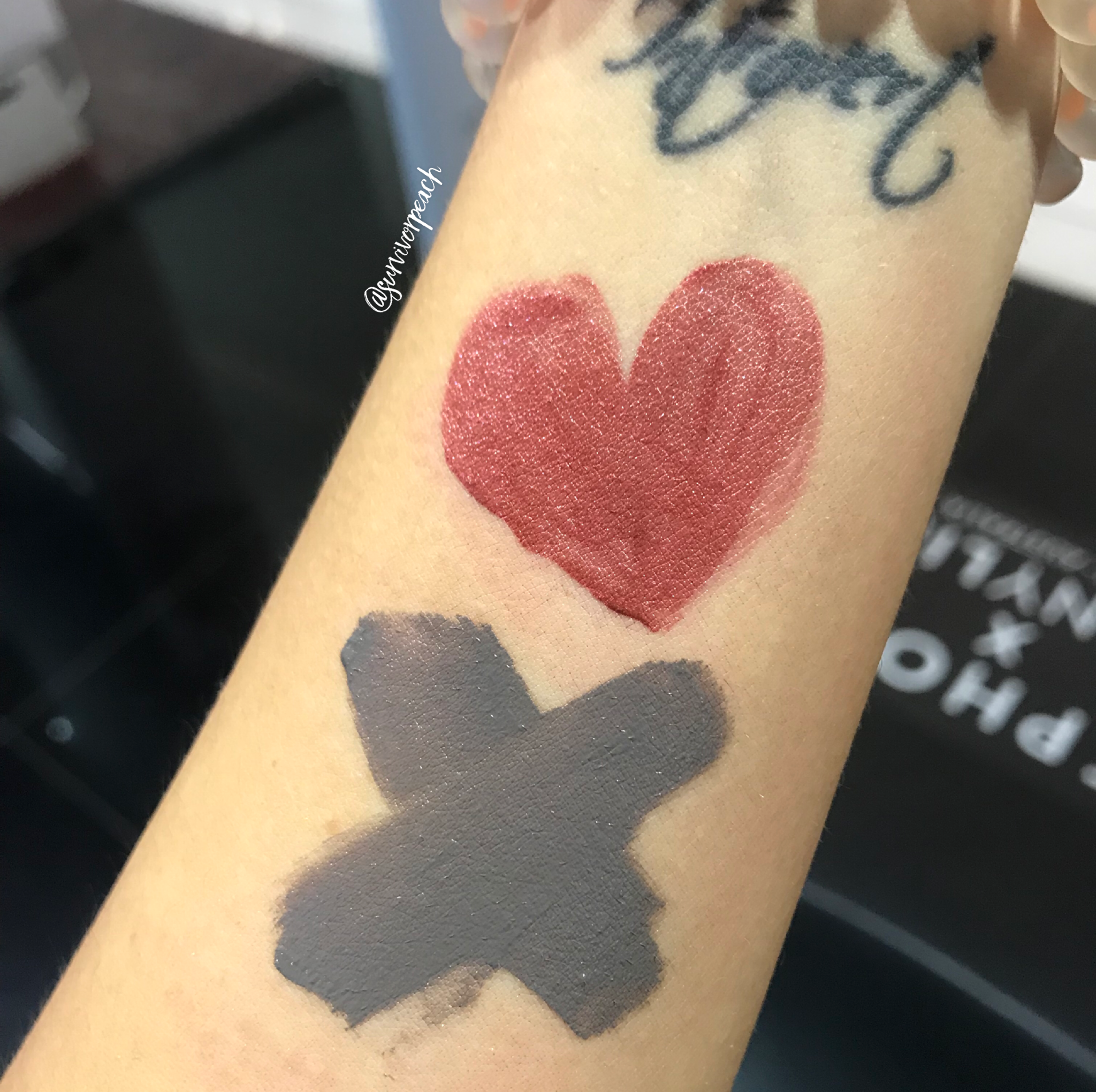 Huda Beauty Liquid Matte Lipstick Swatches: Show Girl, Silver Fox
