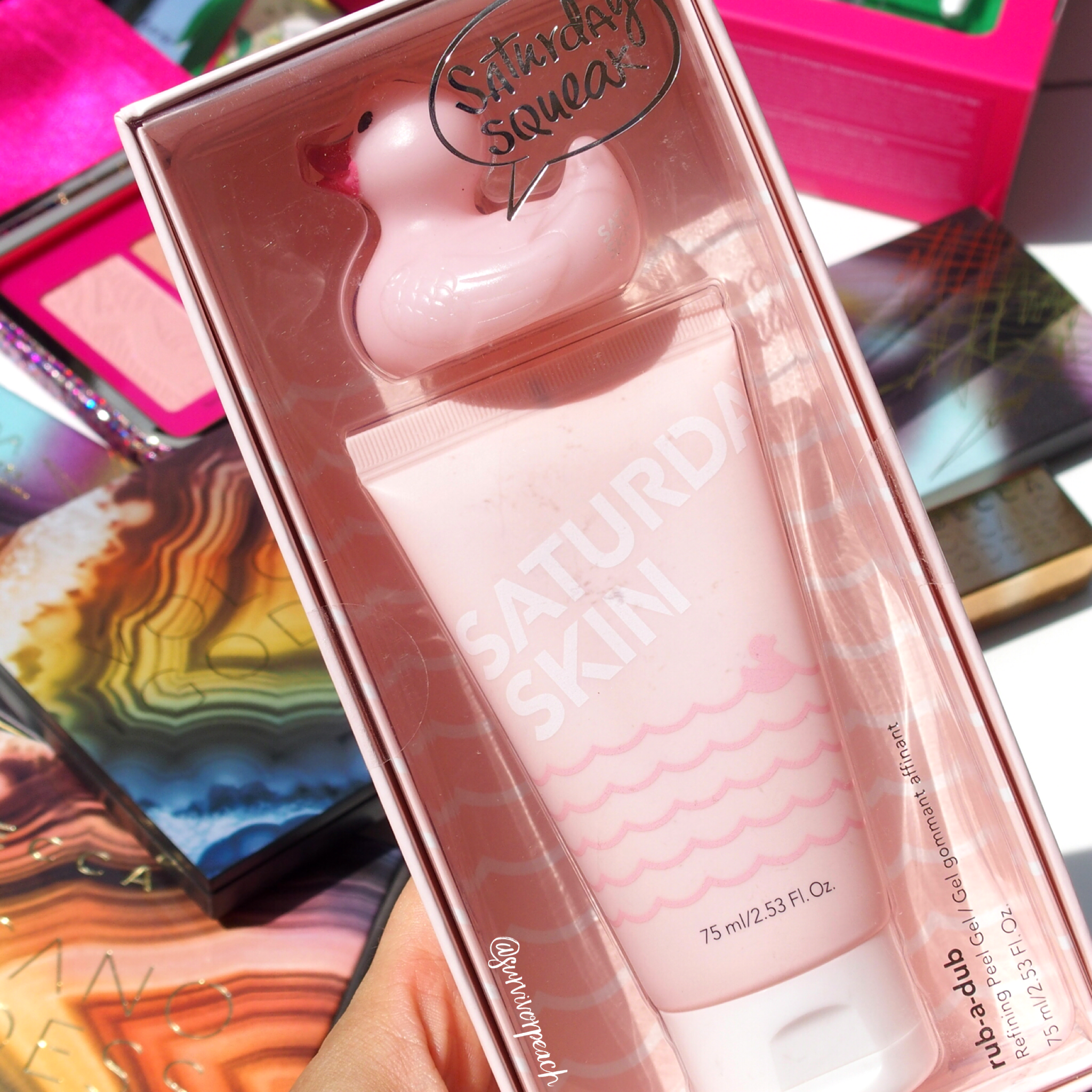 Finally is the Saturday Skin new product, the Rub A Dub Refining Peeling Gel, in a holiday set complete with a cute rubber duck J Saturday Squeak!