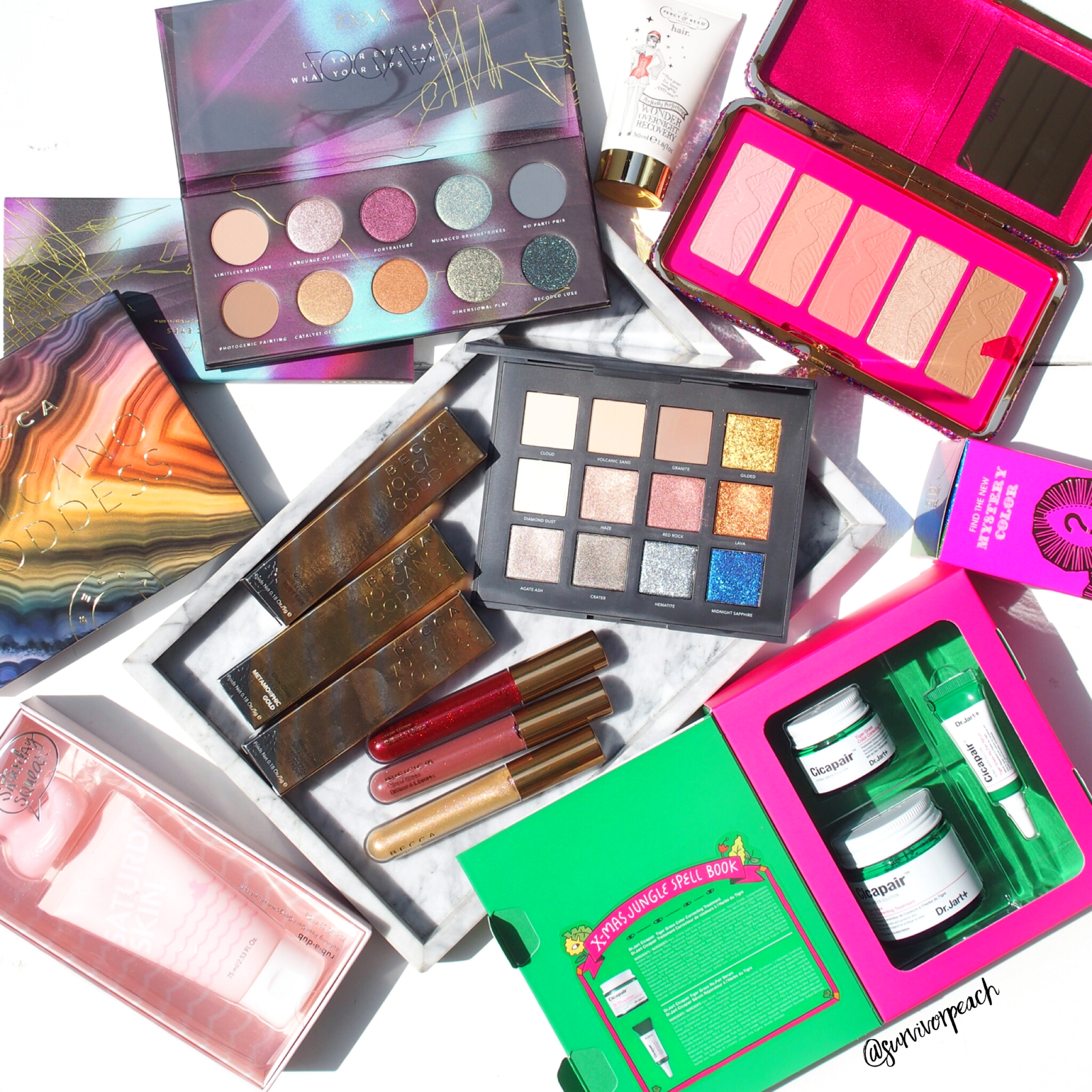 Holiday 2019 items: Tarte Blush palette + Glitter Clutch, Dr.Jart Cicapair set, Saturday Skin Squeak