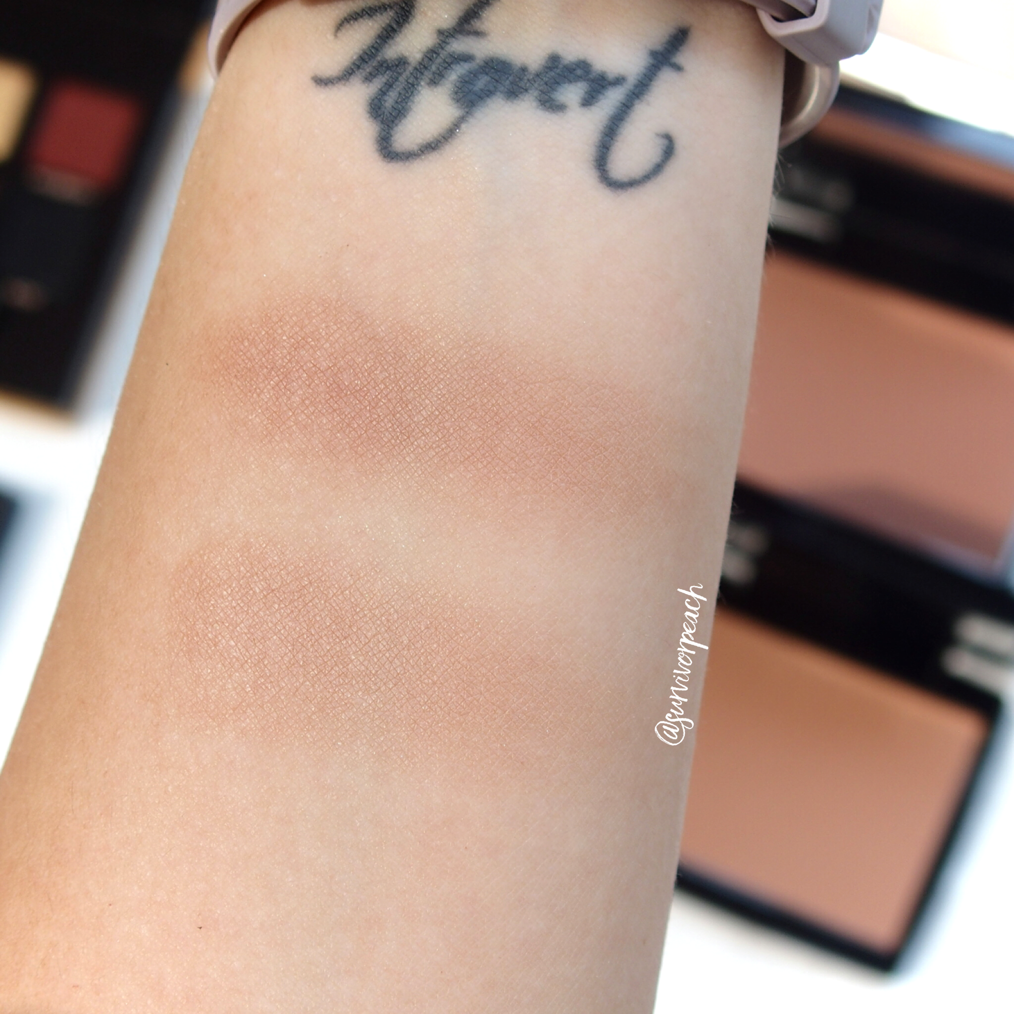 Swatches of Anastasia Beverlyhills Matte Bronzers in Rosewood and Tawny