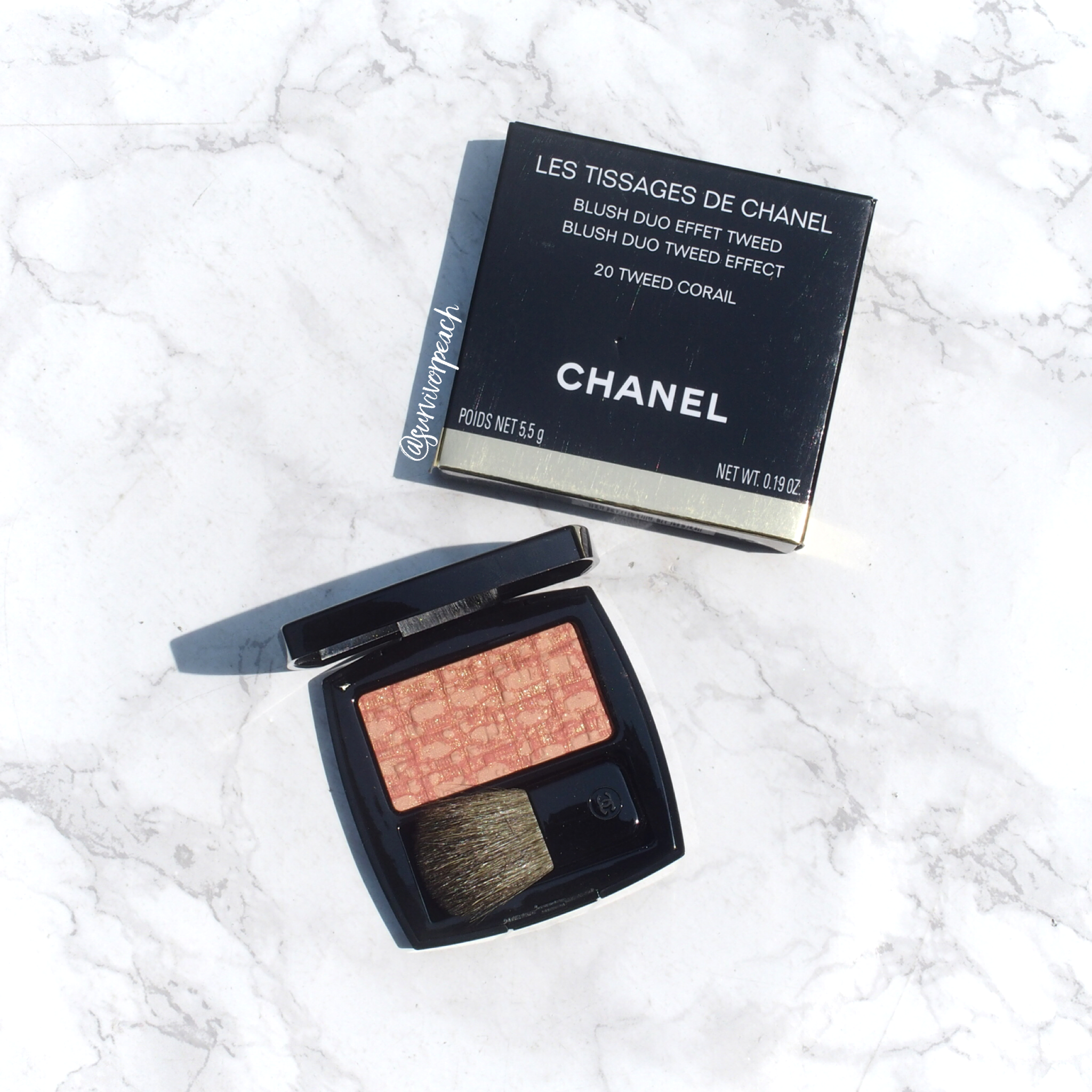 I Grabbed this stunning Les Tissages De Chanel Blush Duo Tweed Effect in shade 10 Tweed Coral from the dutyfree. I’ve been eyeing this for some time, and finally dug in. I gotta say, it’s pricey but I’m loving it! The tweed pattern is just too pretty use though. Gotta have courage and dig in!