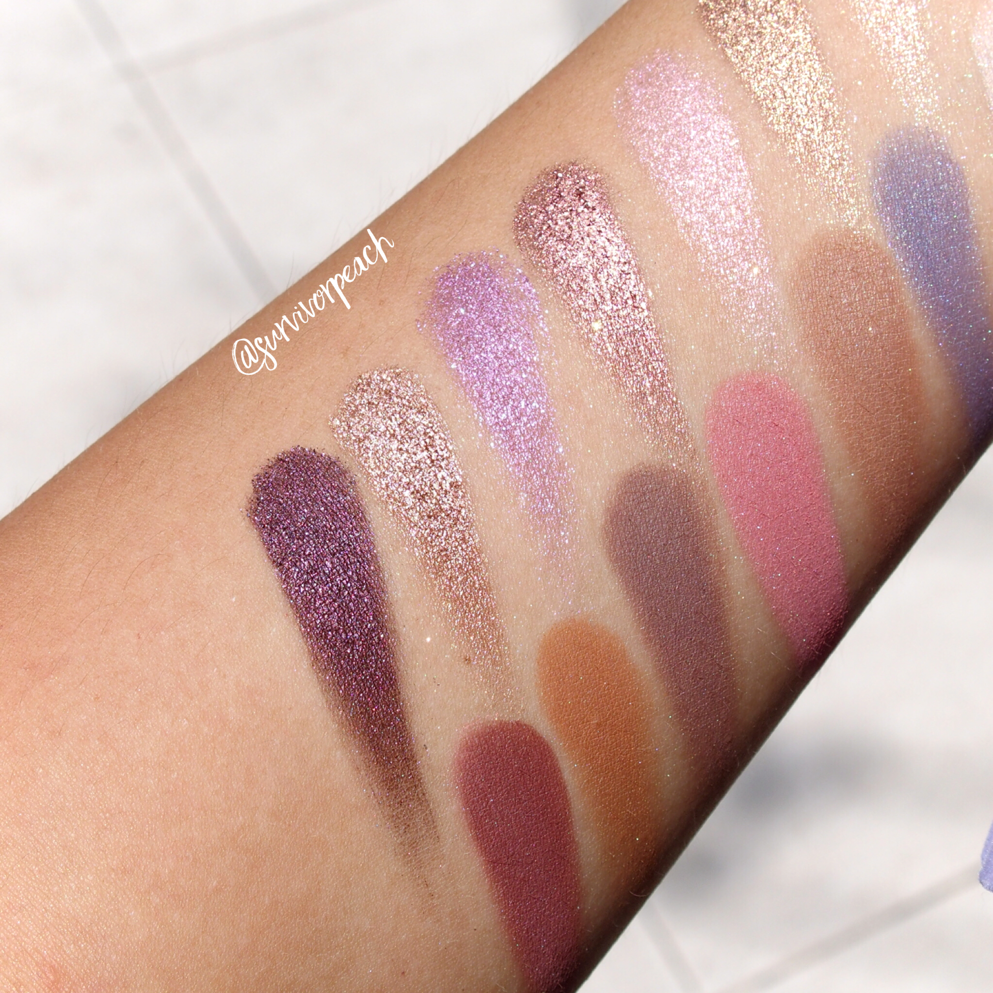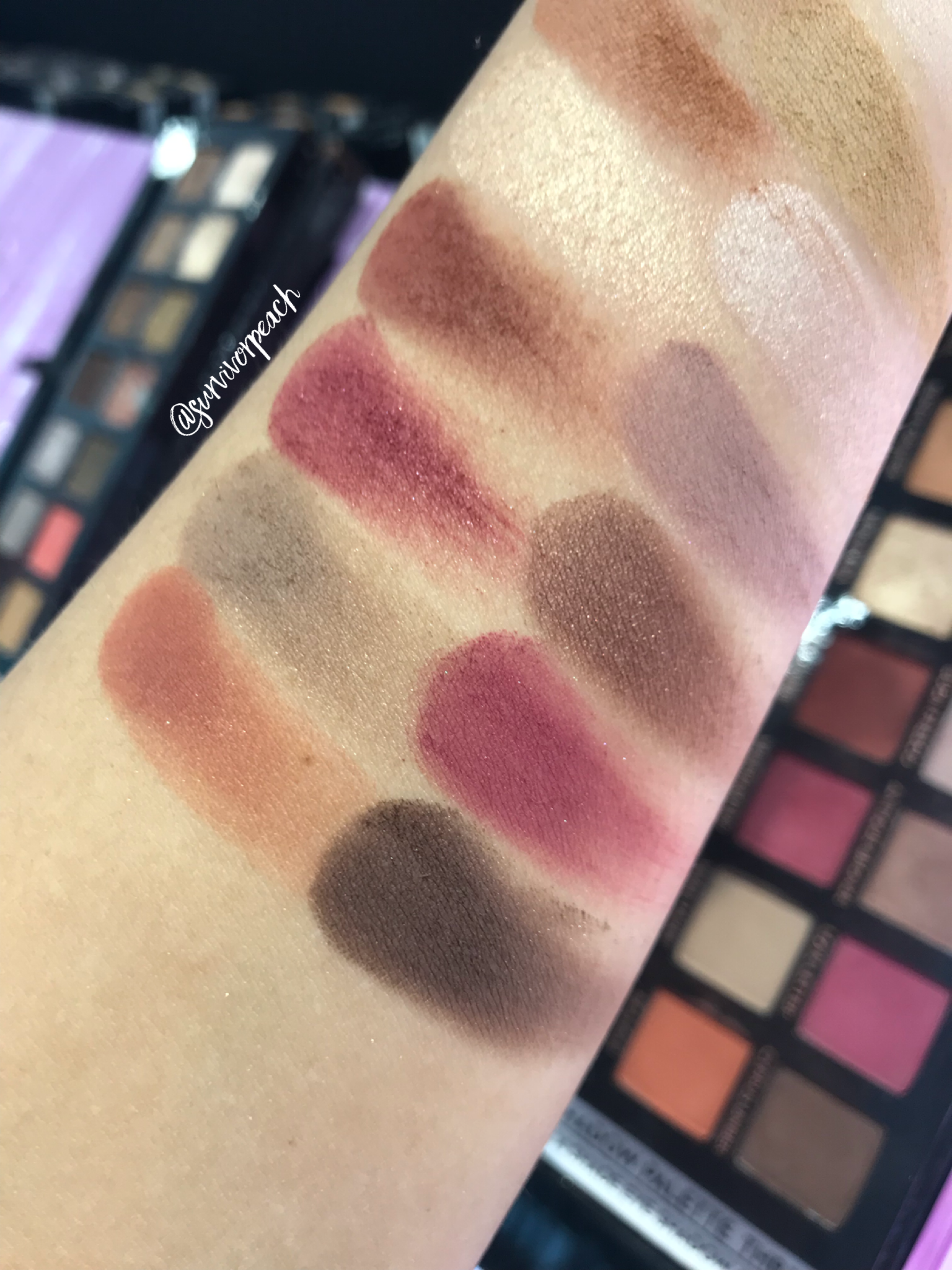 I’ll start with the matte swatches. These lean cool toned, yay! Companies come out with way too many warm toned palettes, its nice to see cool toned shadows once in a while.
