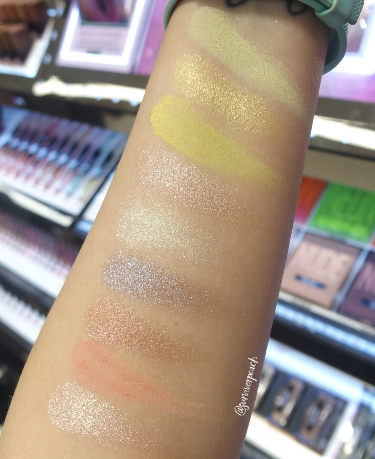 Starting off with Neon Green “A bright collection of 3 buttery matte shades in greens and pinks, 4 yellow and neutral striking shimmer shades, and 2 metallic shades in explosive copper and duo-chrome blue.”