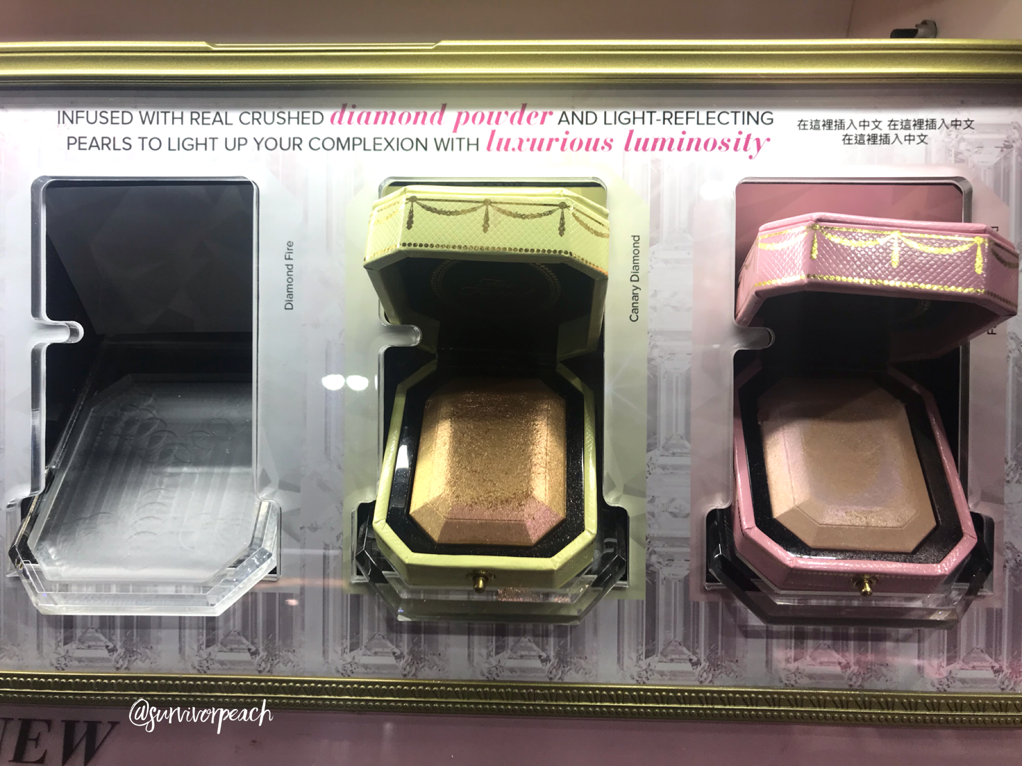 Too faced Diamond Fire, Canary Diamond and Fancy Pink Diamond Highlighter
