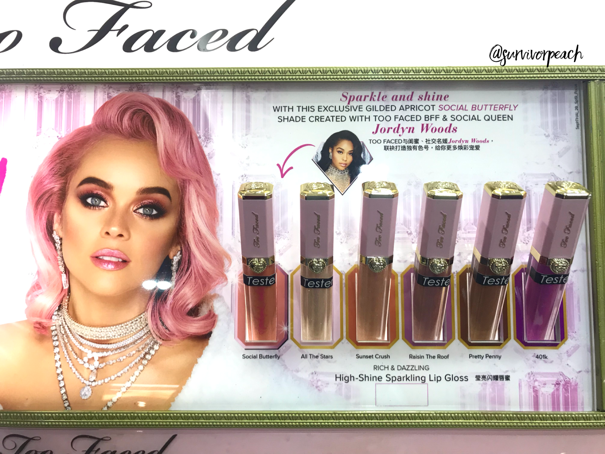 Toofaced Rich & Dazzling High Shine Sparkle Lip Gloss - Social Butterfly