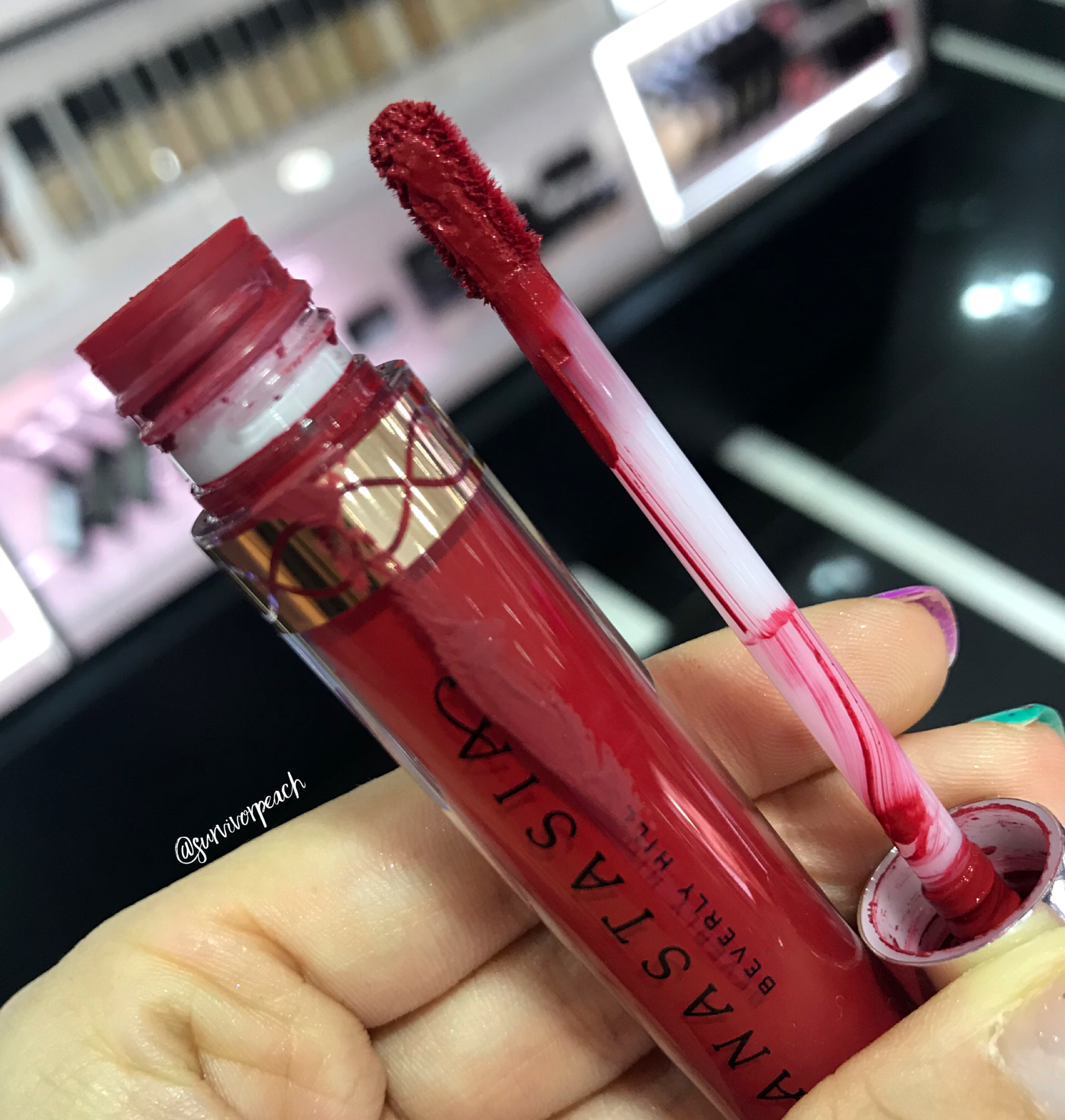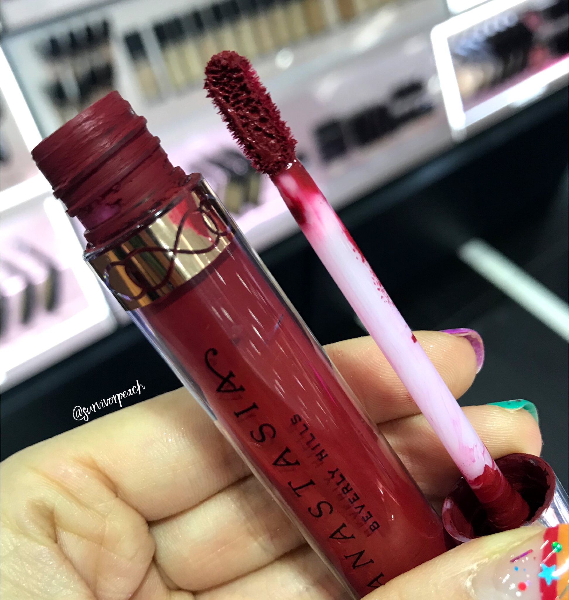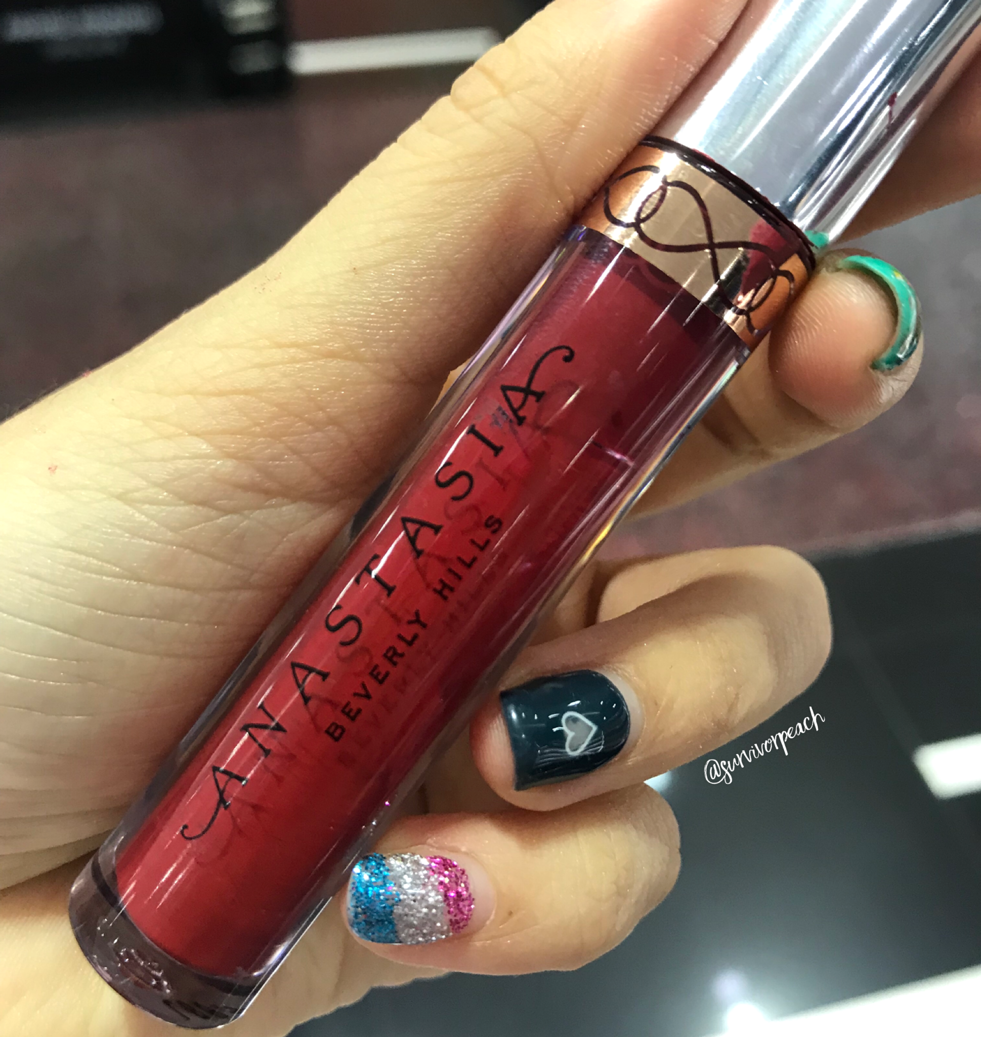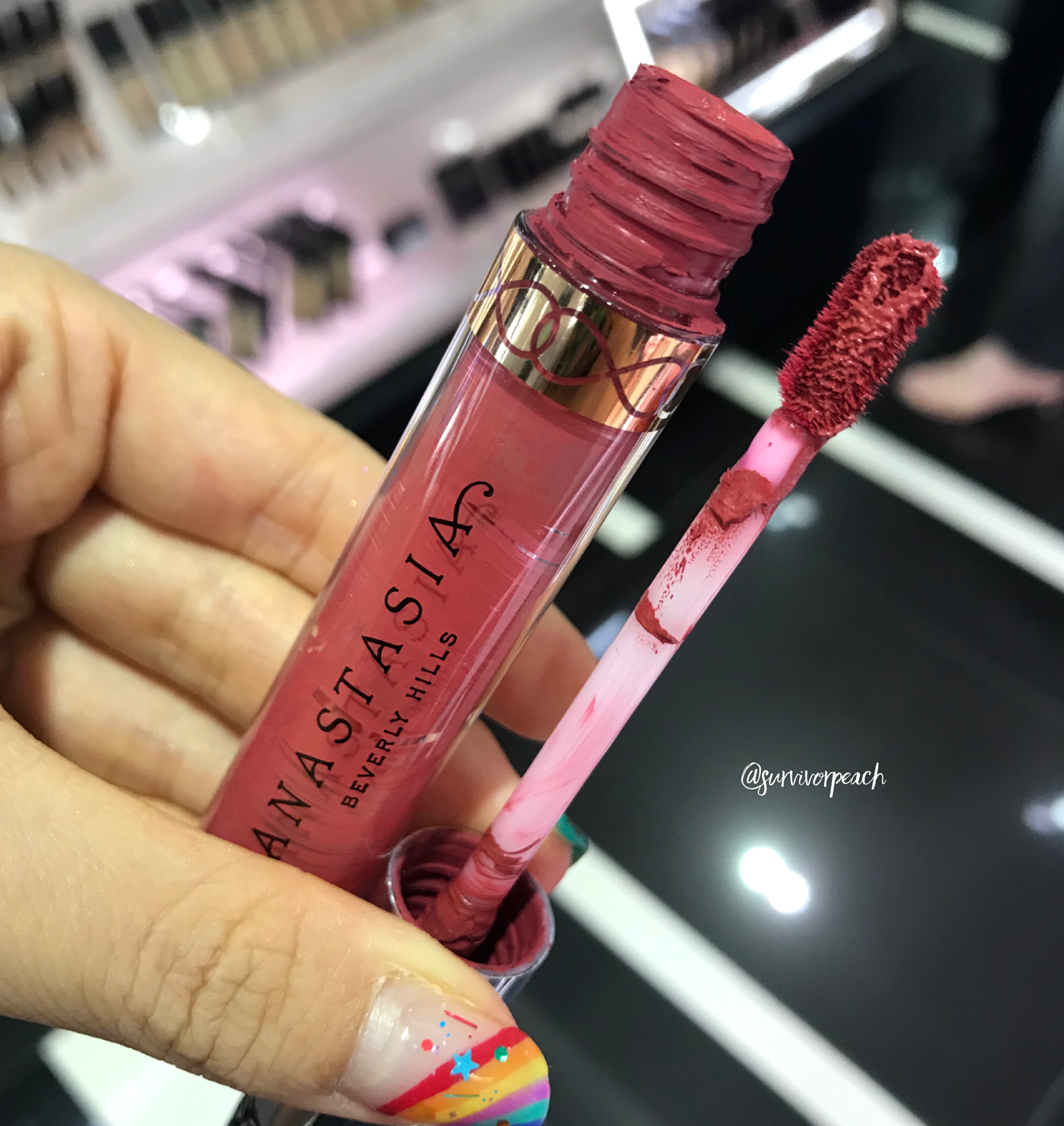 Brand’s description: Anastasia Beverly Hills Liquid Lipstick is a full-pigment liquid lip color formula that dries down to a weightless matte finish for smudge-proof wearability and long-lasting color. Featuring ultra-saturated pigment in a comfortable matte formula, this liquid lipstick delivers full-coverage wear and creates the appearance of fuller lips. The Anastasia liquid lipstick features a double-sided flat applicator with a rounded tip that distributes the perfect amount of product for precise lip color application that lasts all day.