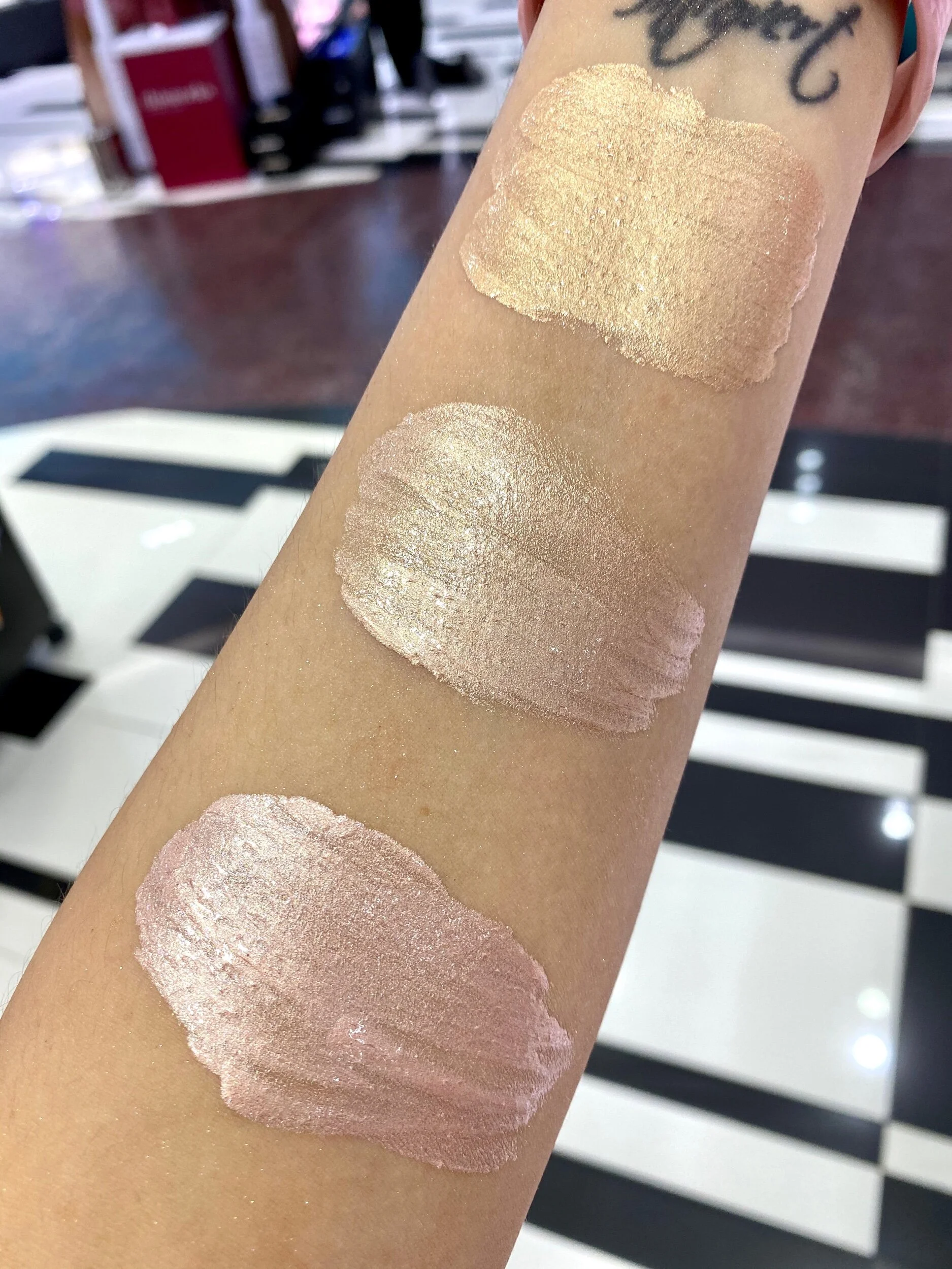 Becca Ignite Liquified Light Highlighter blended swatches - Creativity, Passion, Acceptance